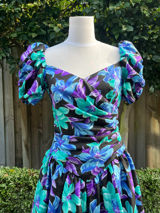 Beautiful Vintage Floral Midi Dress | Size 10