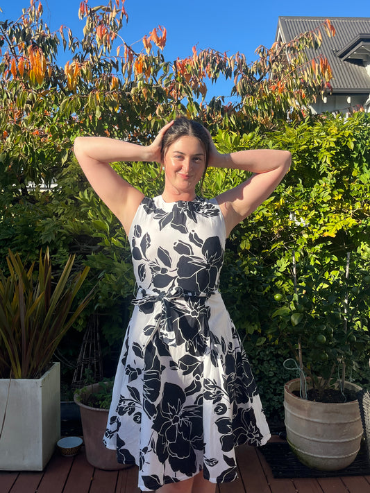 Black and White Floral Midi Dress | Size 12