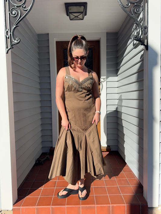 Sold outBeaded Black Midi Dress | Size 8-12