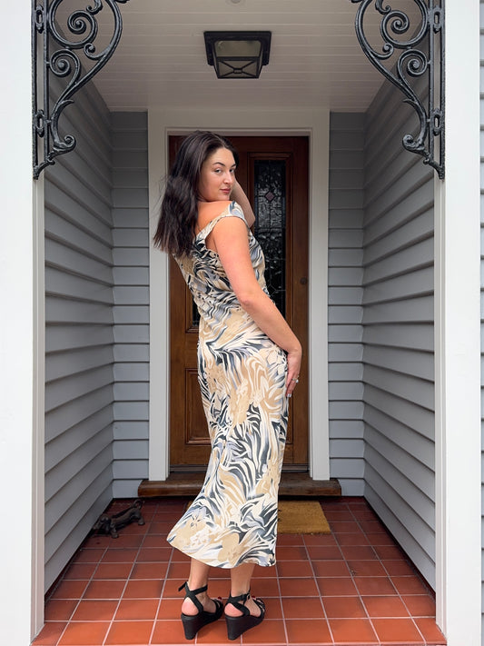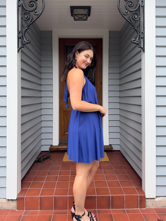 Silky Navy Cheetah Print Mini Dress | Size 14