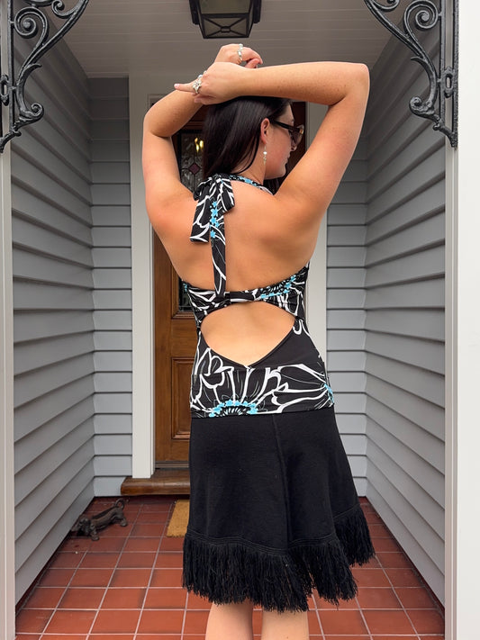 Silky Navy Cheetah Print Mini Dress | Size 14