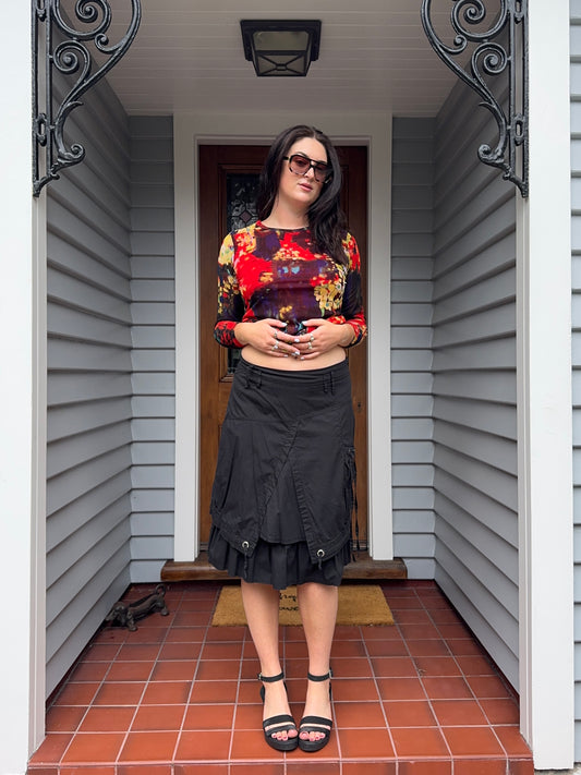 Black Maxi Skirt with Floral Detail | Size 12-14