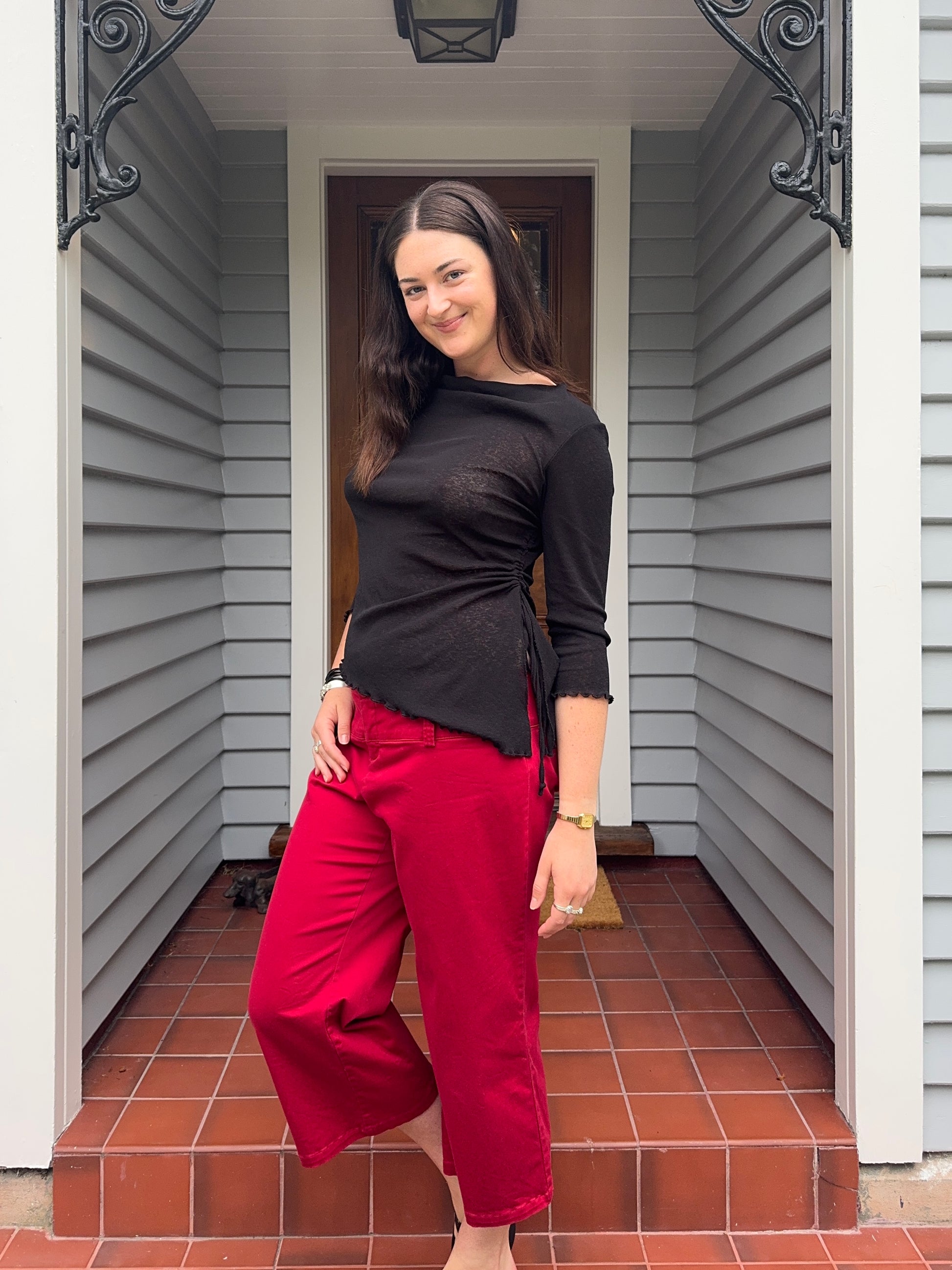 A modern and stylish black top featuring an asymmetric hem for a unique, fashion-forward look.