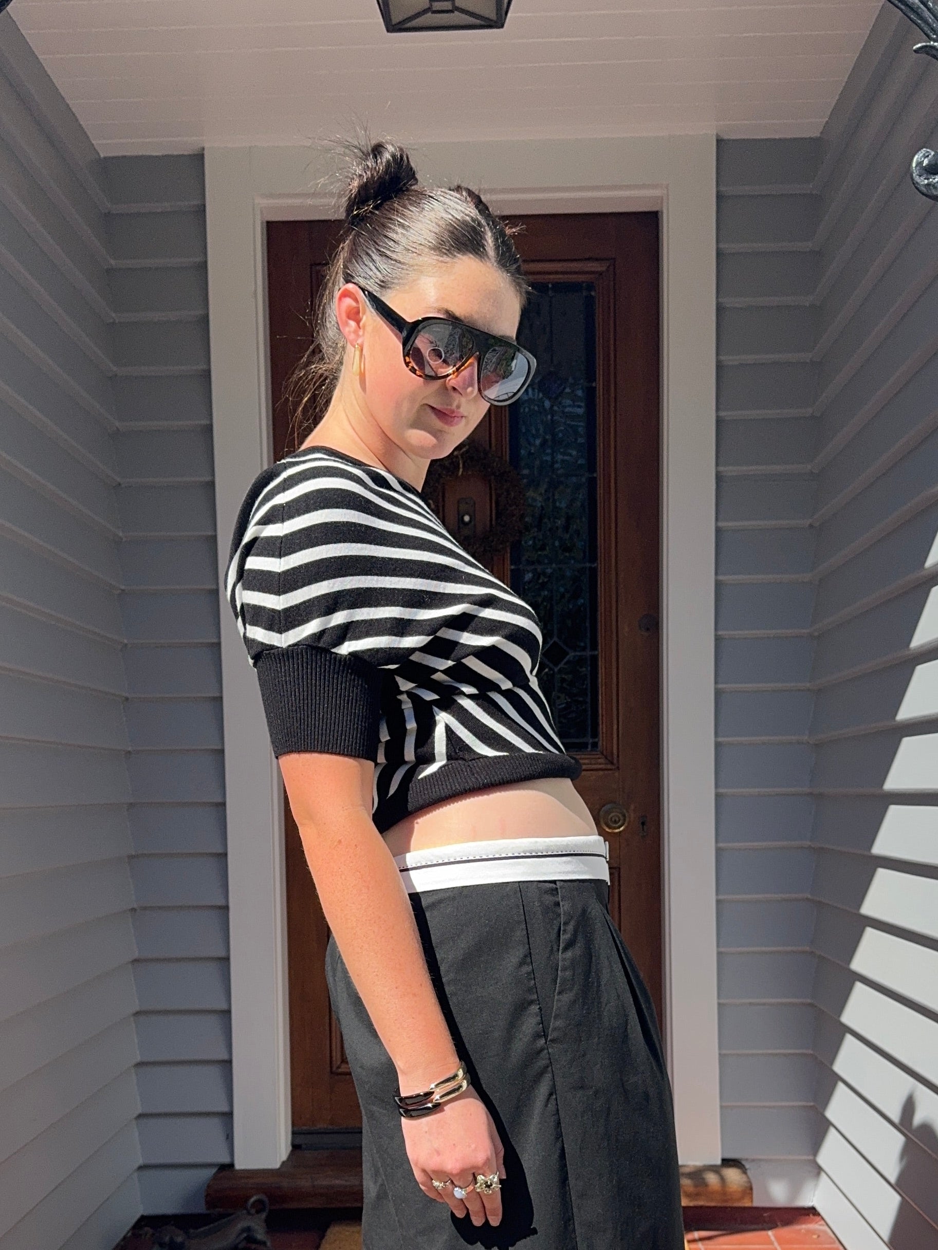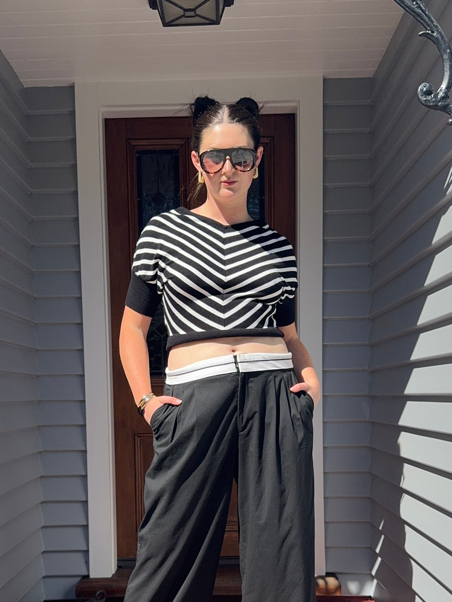 A unique and stylish striped top featuring an asymmetric design for a modern twist.