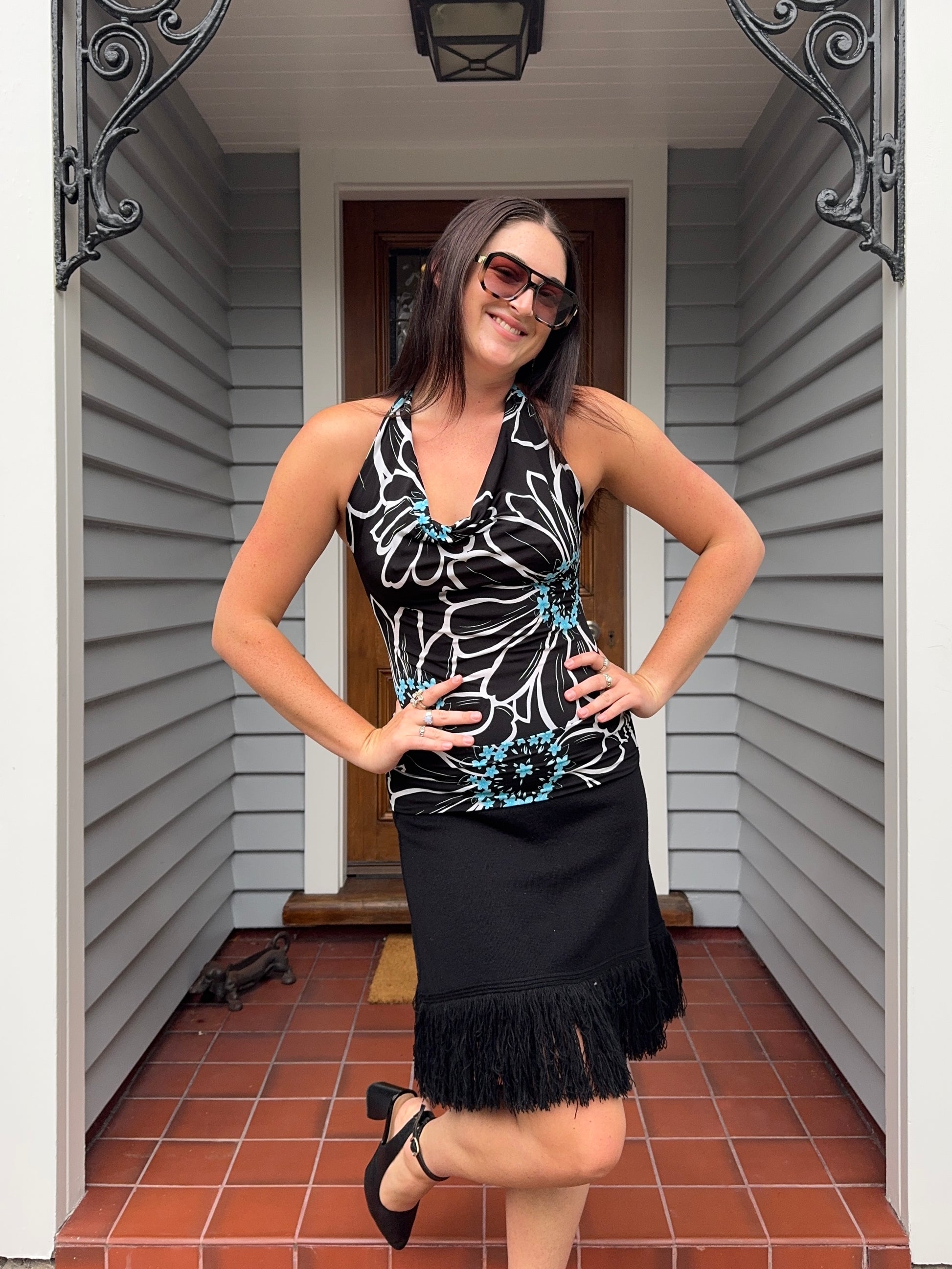 Floral Halter Top With Open Back | Size M