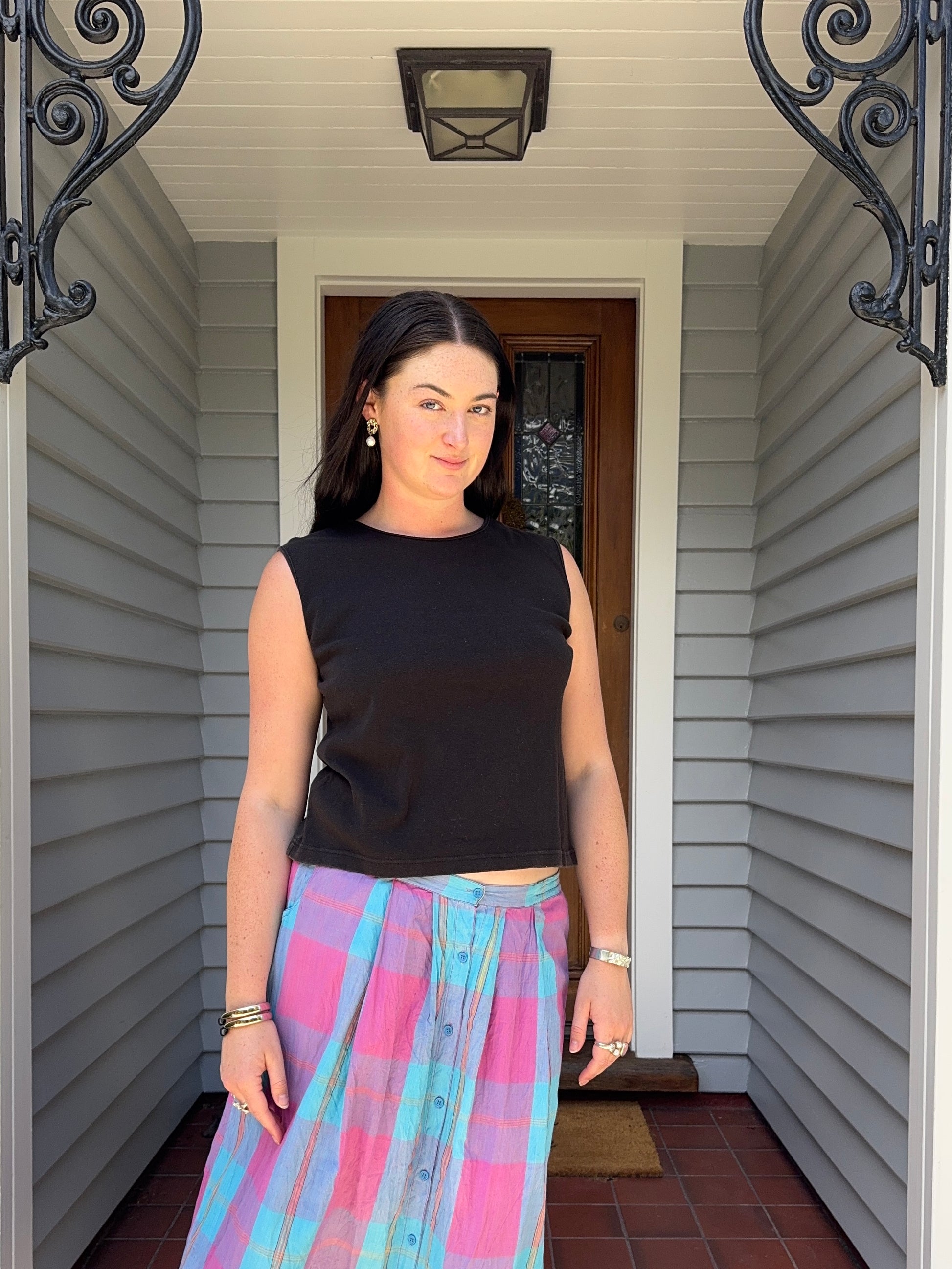 A classic black cotton singlet made from soft, breathable fabric for all-day comfort. With a versatile, flattering fit, it’s perfect for layering or wearing on its own for a simple, effortless look.