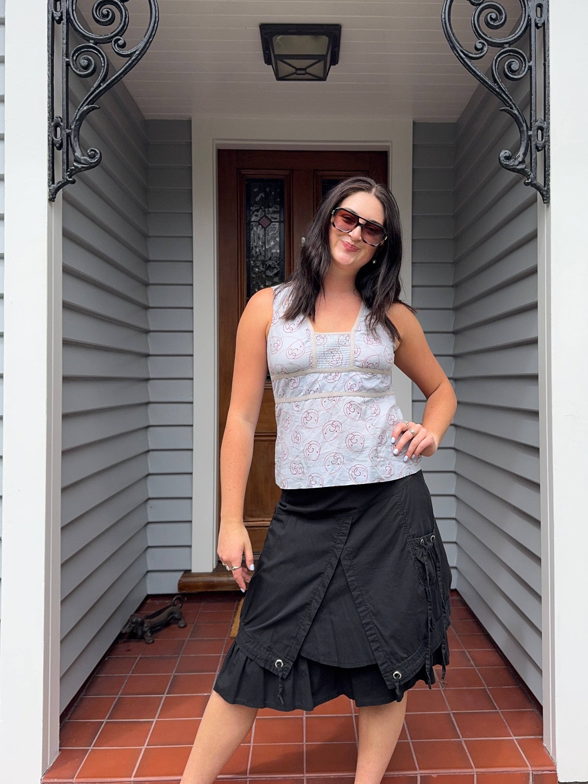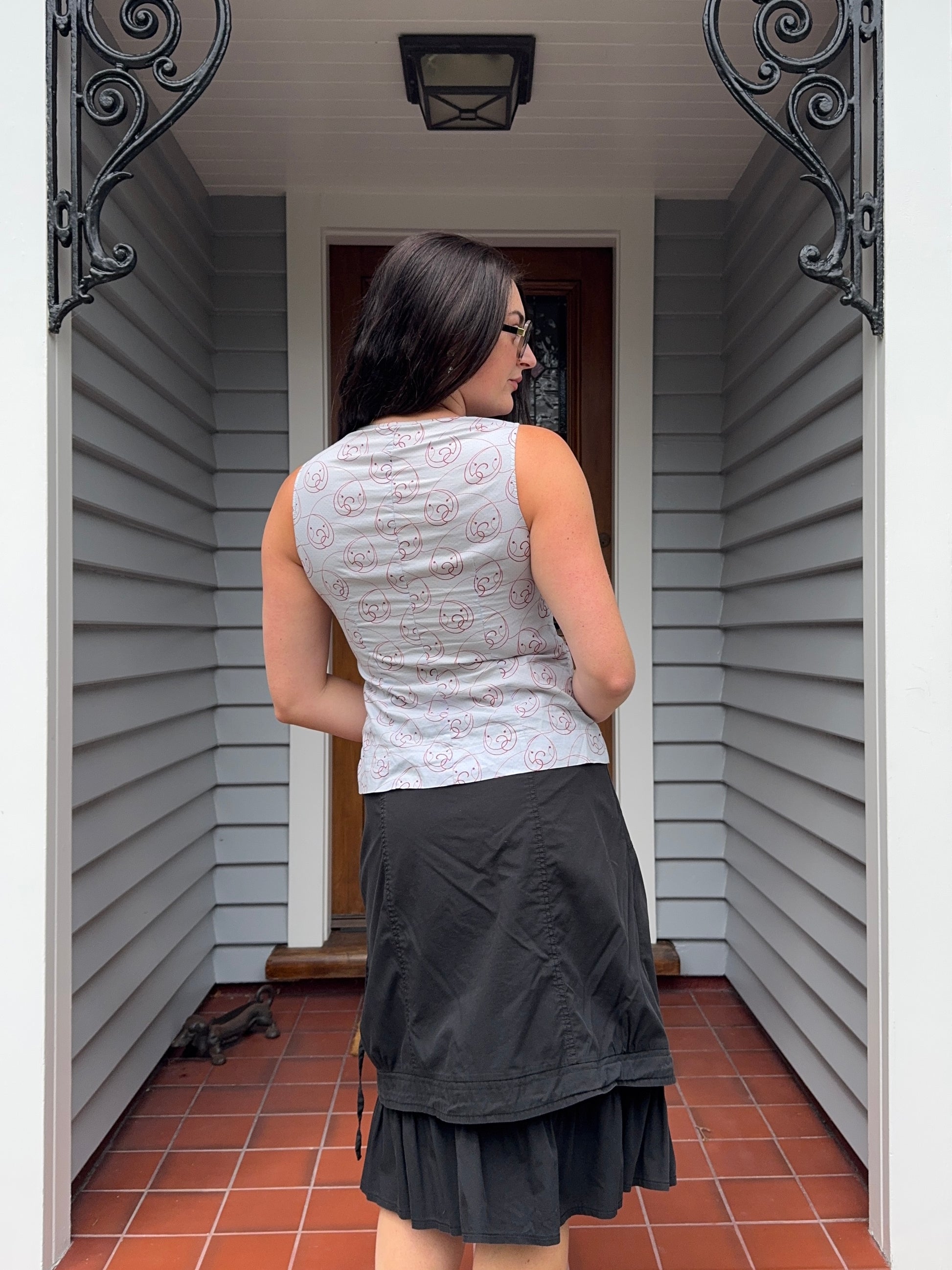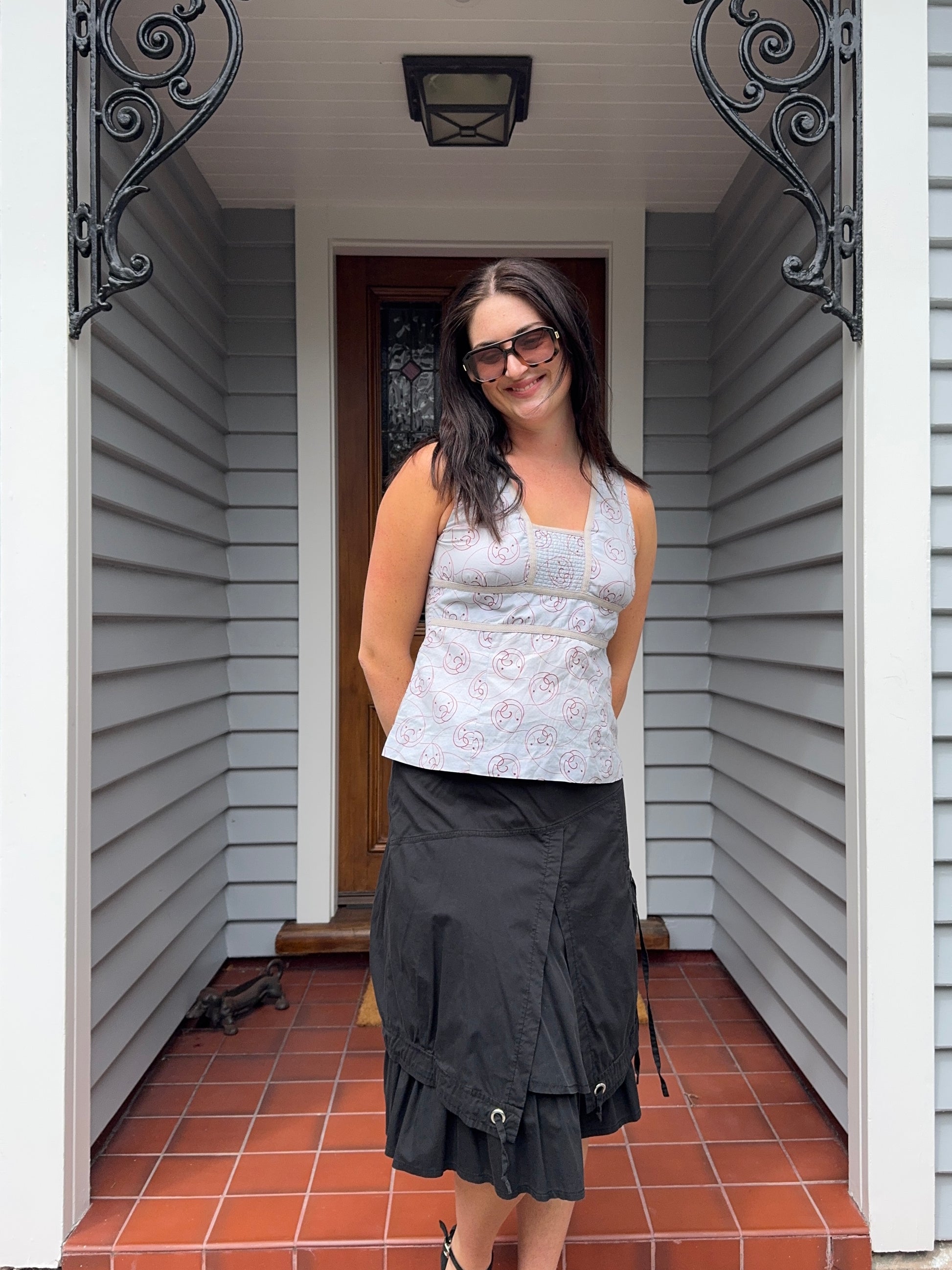 A vibrant blue and red patterned blouse with a flattering fit for size 12. Perfect for work, brunch, or adding a pop of colour to your everyday wardrobe.