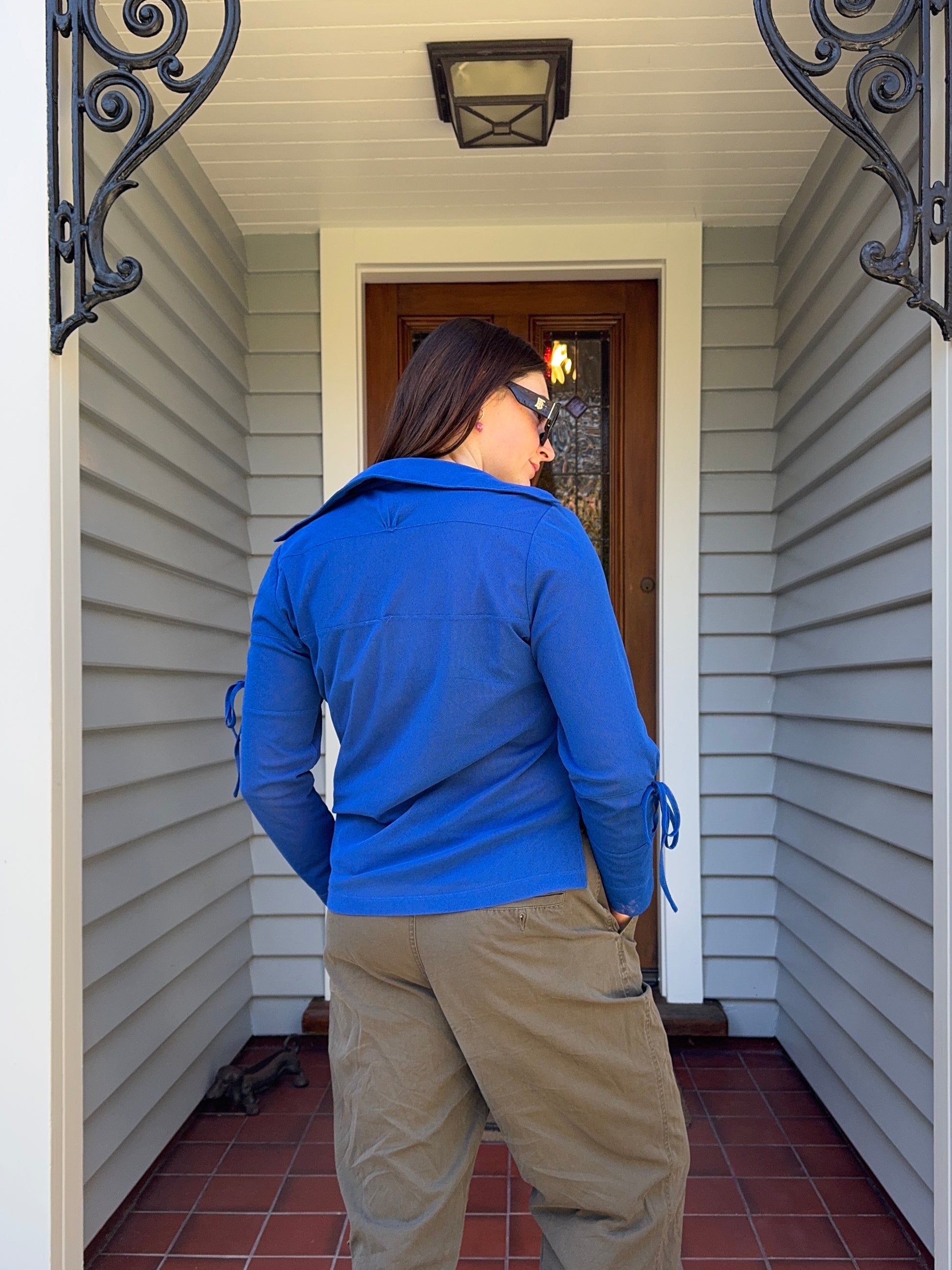 A chic little blouse in a beautiful blue shade, finished with a tie-up detail for a flattering fit.