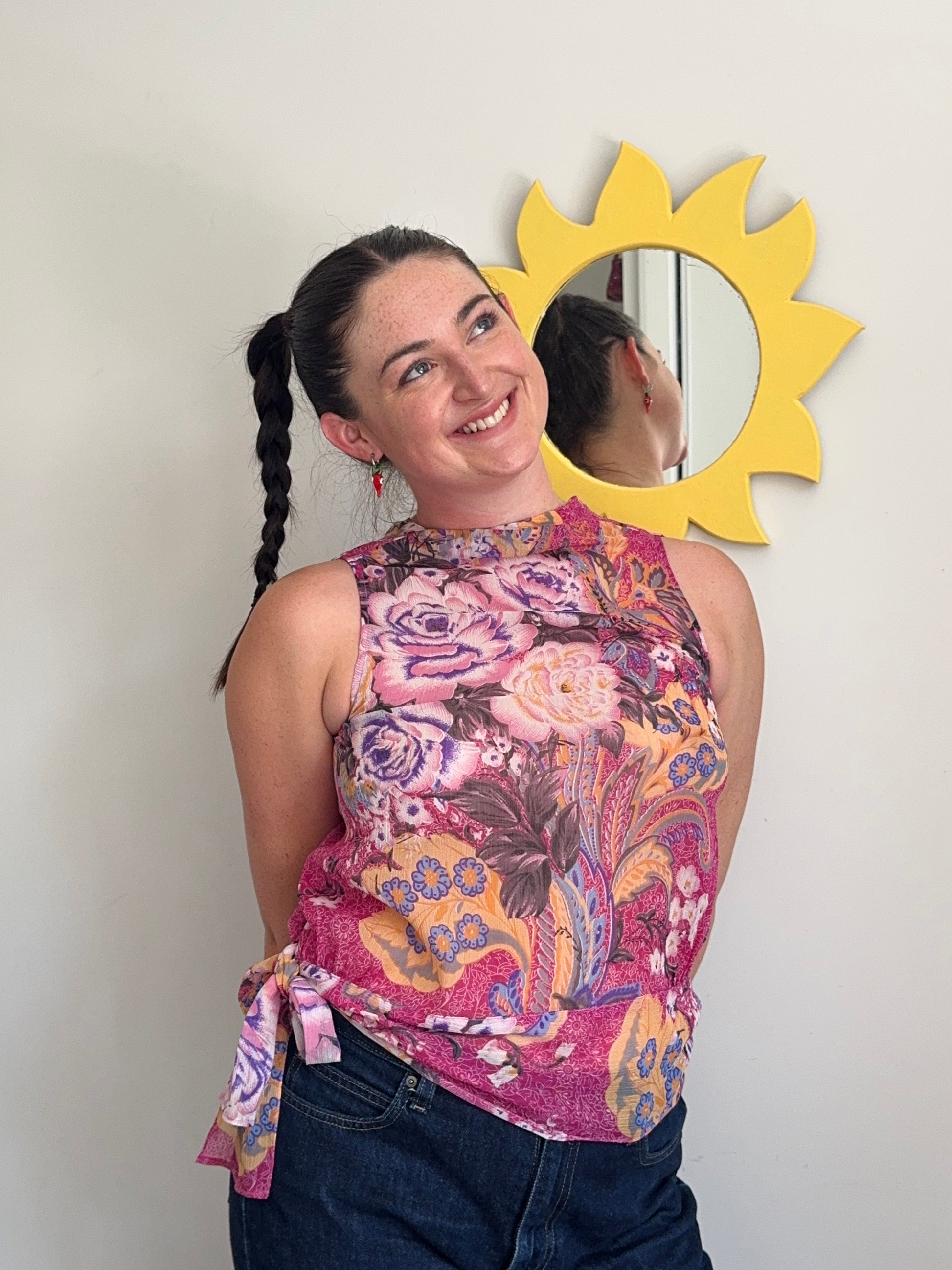 A bright and cheerful floral blouse featuring a lightweight, flowy fit. Easy to dress up or down, it adds a fun pop of colour to any outfit — perfect for pairing with jeans, skirts, or tailored pants for a fresh, effortless look.