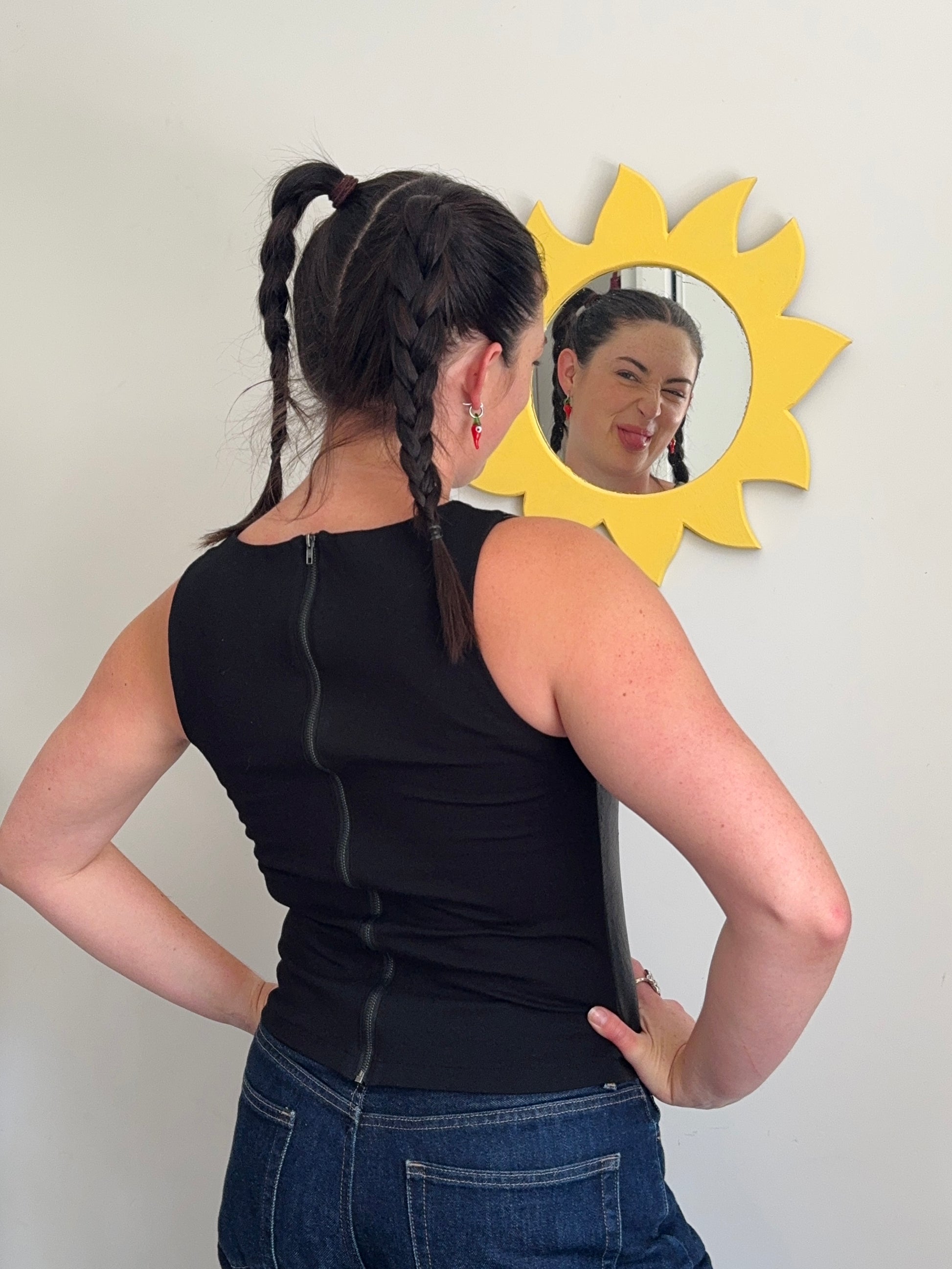A sleek and edgy leather top featuring a full zip-up front and structured fit. Perfect for adding a bold statement to any outfit, it pairs effortlessly with jeans, skirts, or layered over dresses for a modern, fashion-forward look.