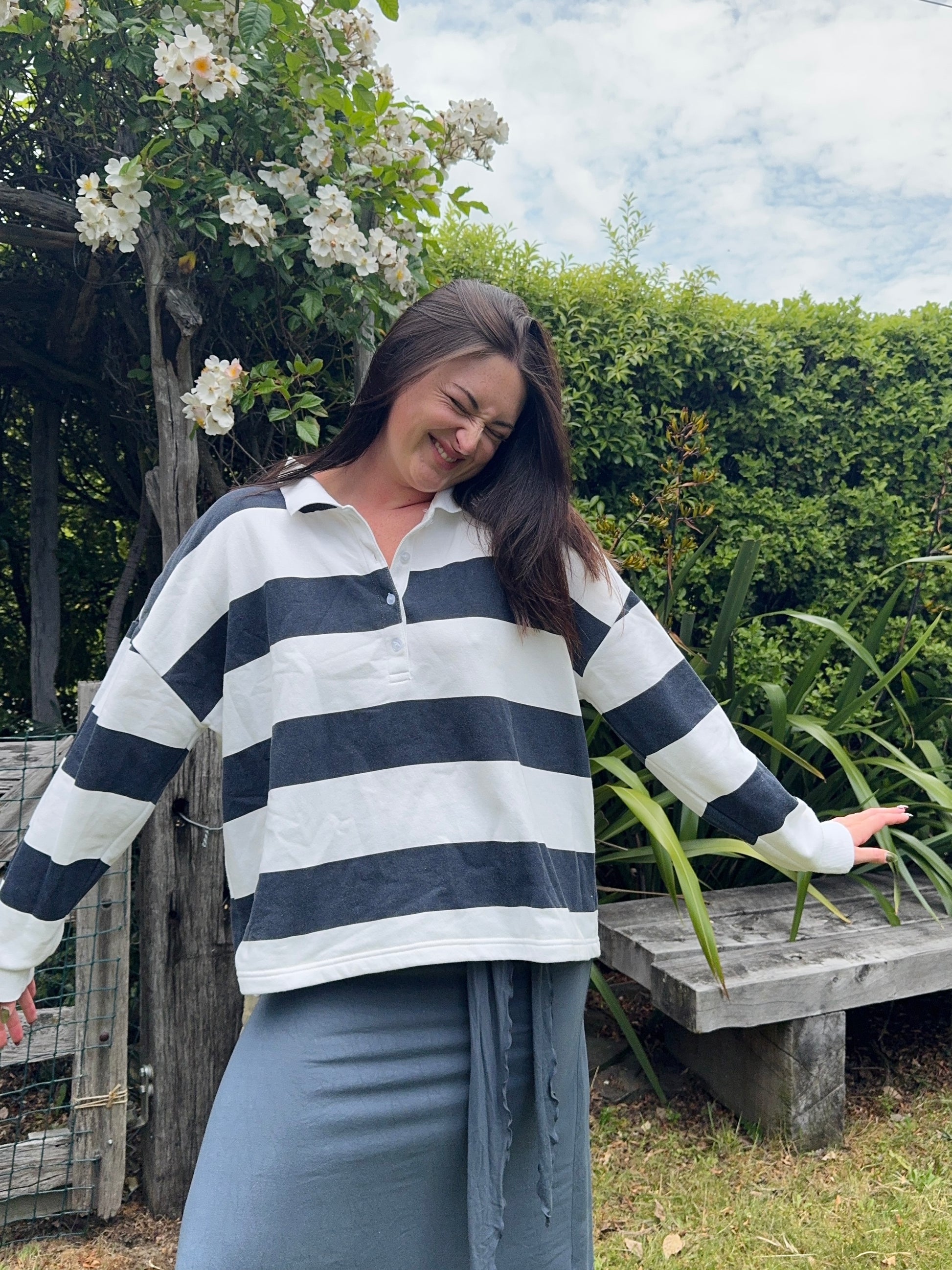 A classic striped rugby jersey with a relaxed, comfortable fit for size 16. Perfect for casual days, weekends, or layering for a sporty-chic look. Durable, versatile, and effortlessly stylish.