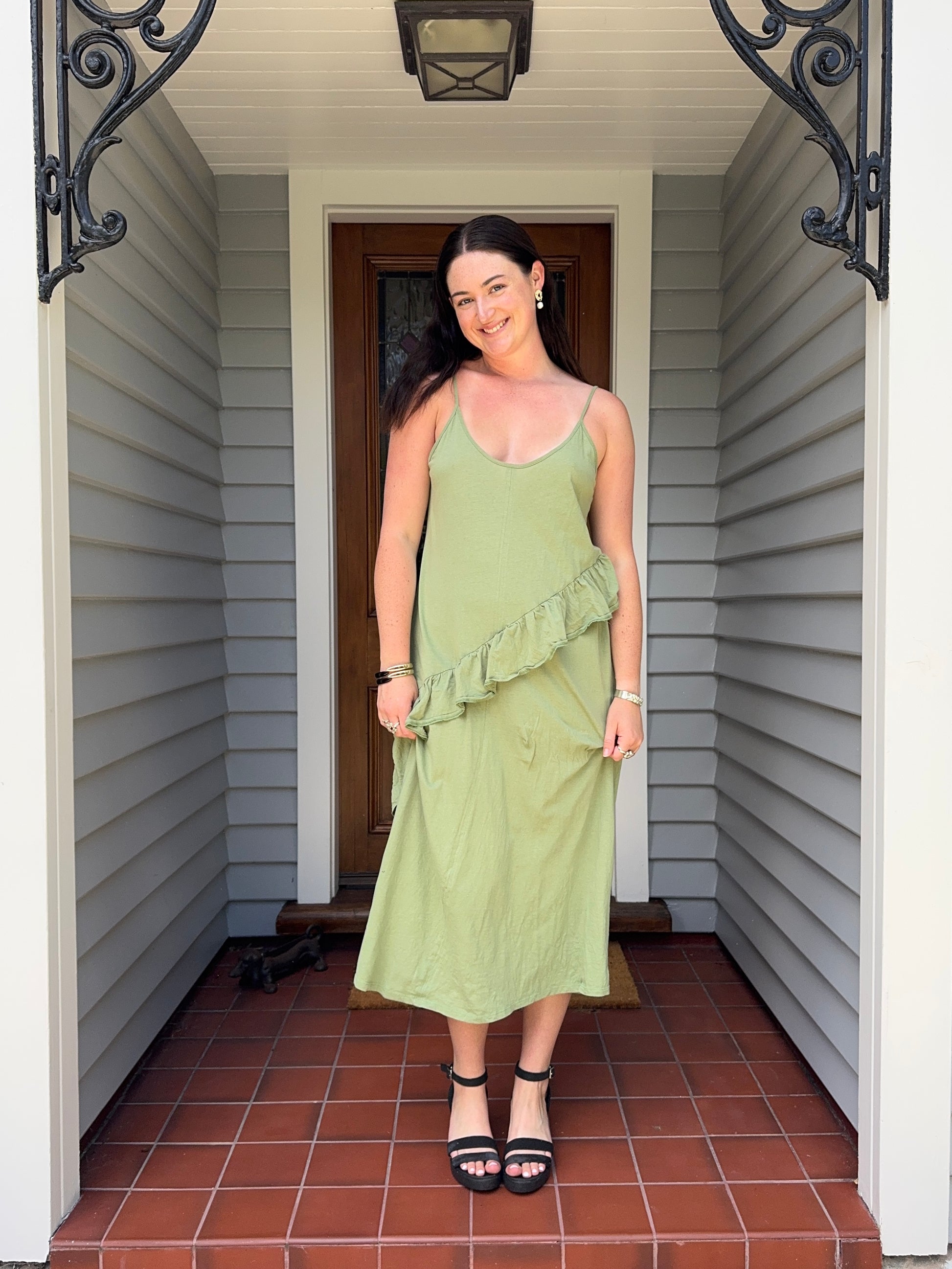 A stunning Zara maxi dress in a rich green hue, featuring a flattering flowy silhouette and elegant, effortless drape. Perfect for both casual days and dressed-up evenings — style with sandals, heels, or a denim jacket for a versatile, chic look.
