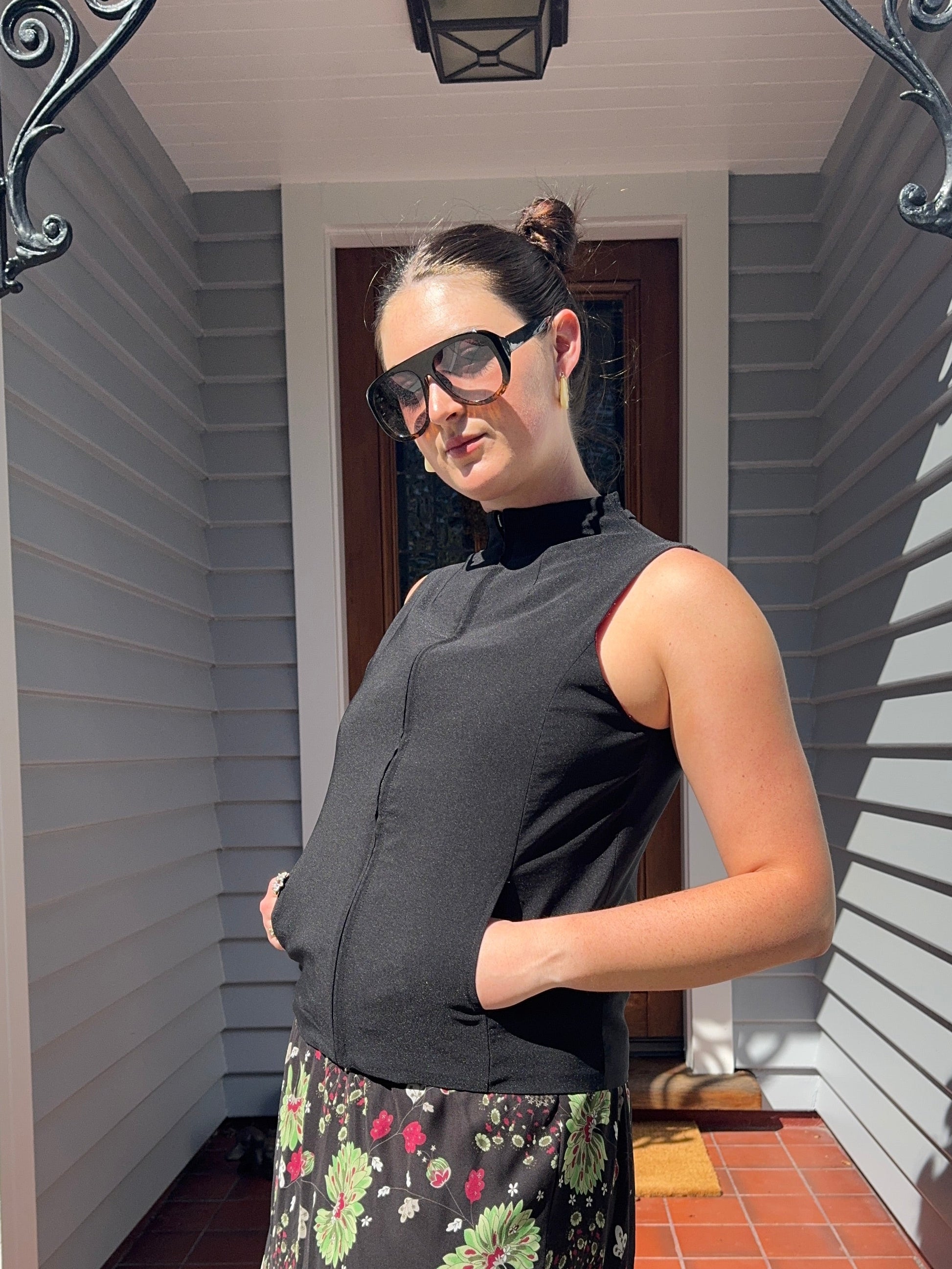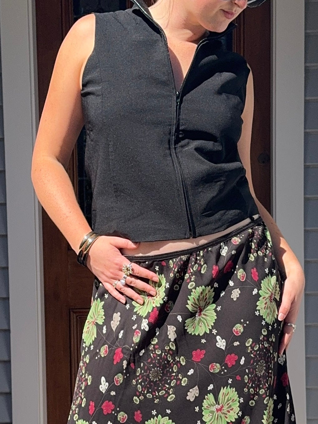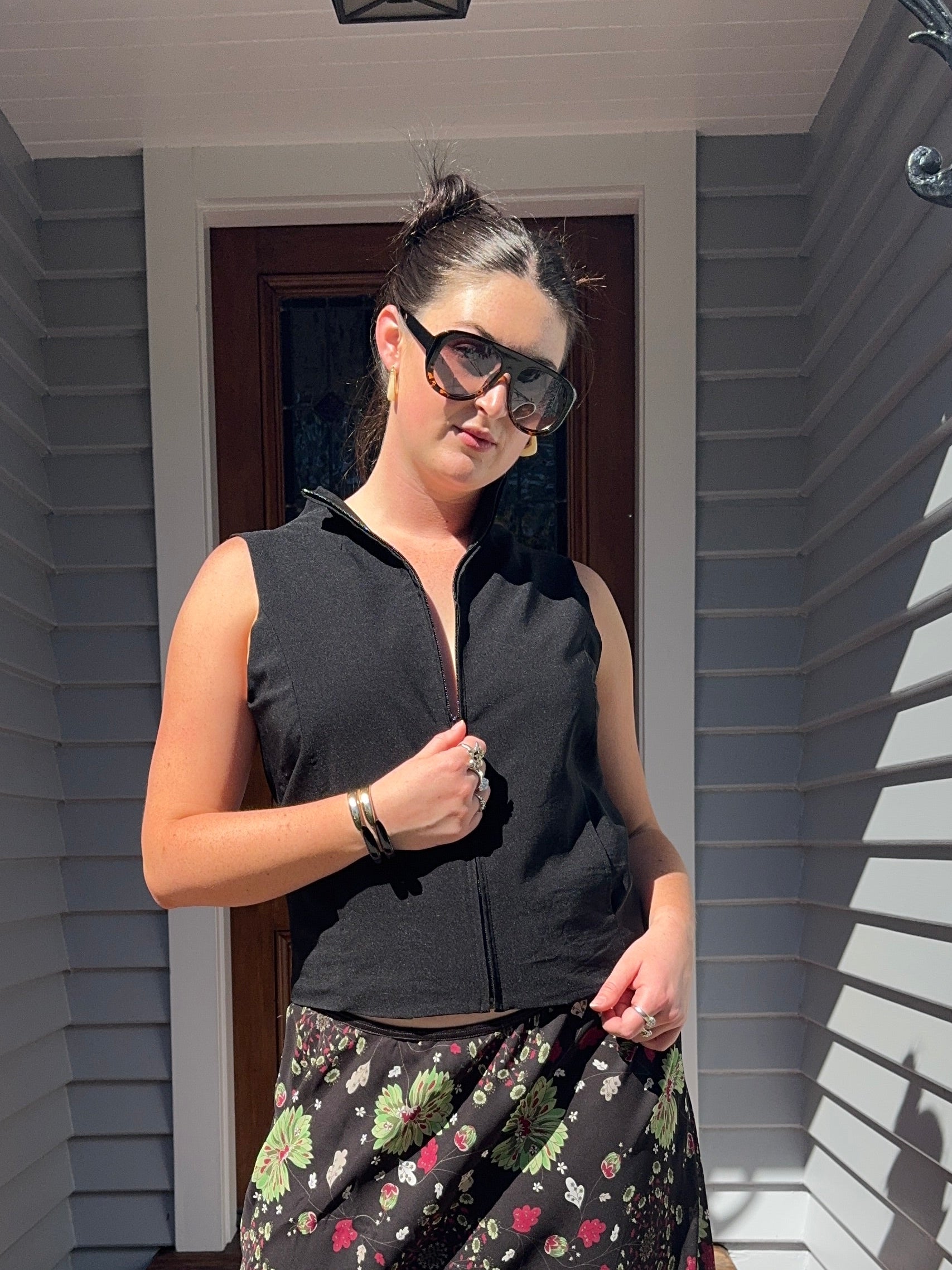 A sleek and versatile vest-style top featuring a front zip detail for an effortlessly cool edge.